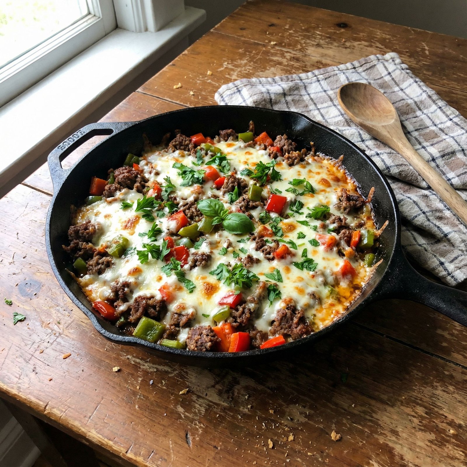 Looking for a quick, comforting meal that fits perfectly into your low-carb lifestyle? This Cheesy Beef Skillet is the answer! Packed with savoury ground beef, colourful peppers, and a generous layer of gooey mozzarella, this one-pan wonder delivers big flavour with minimal fuss.