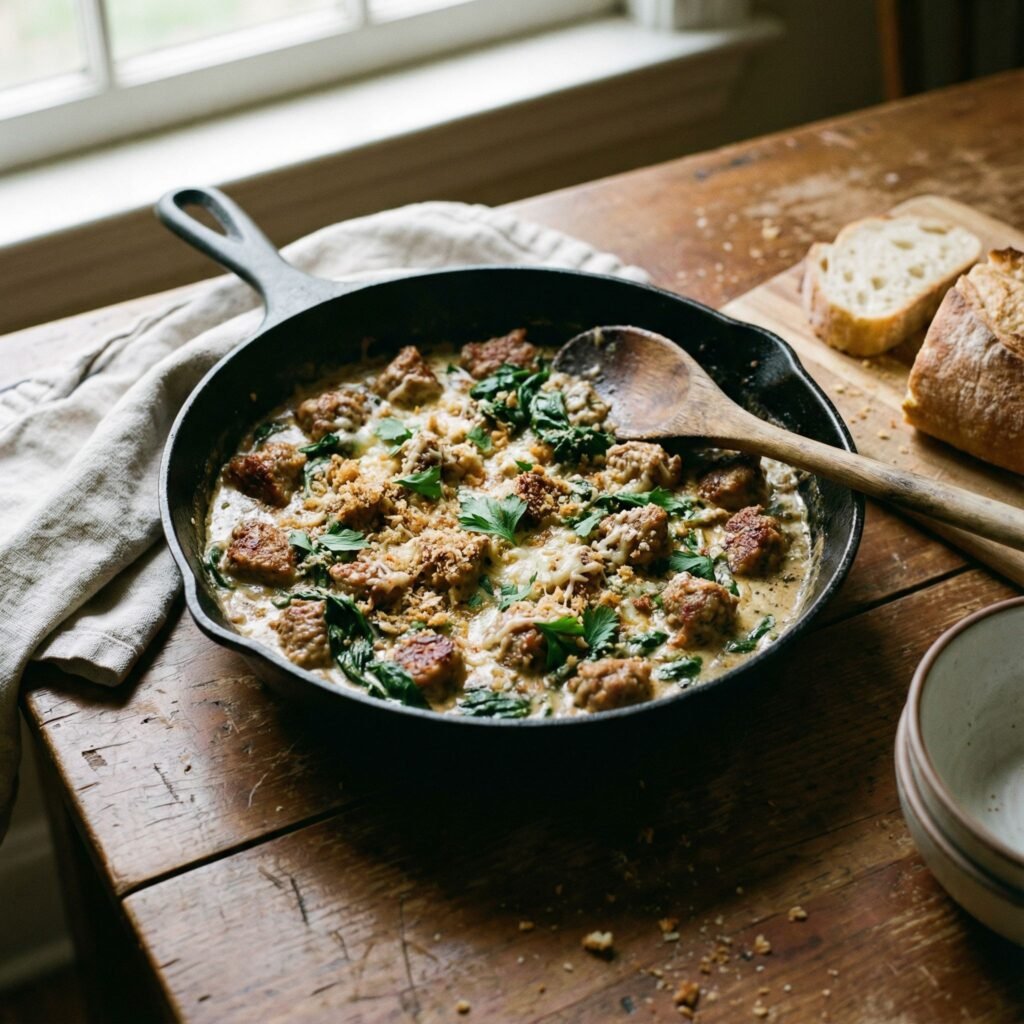 Creamy Sausage and Spinach Skillet – One-Pan Comfort Dinner