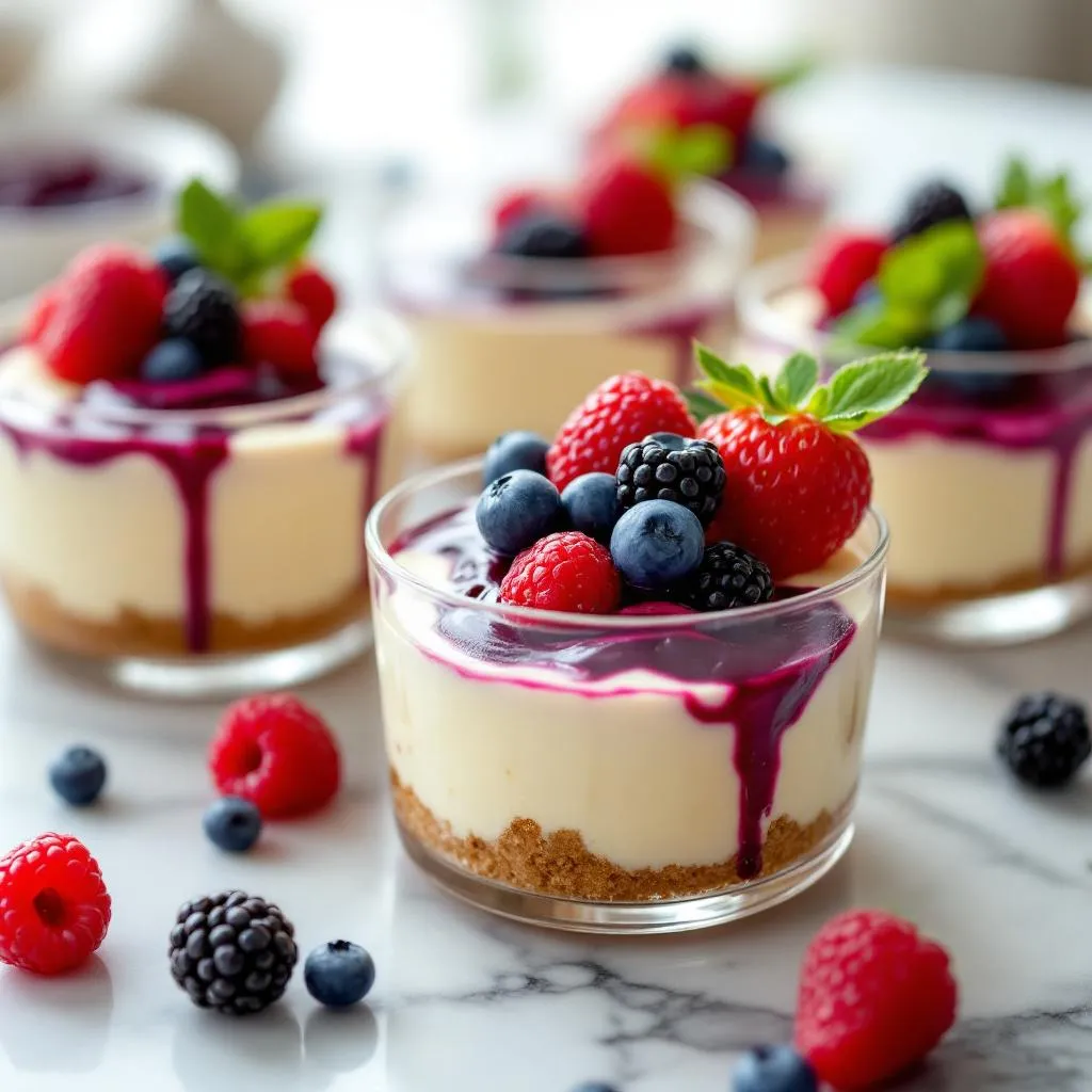 No Bake Cheesecake Cups with Fresh Berry Swirl