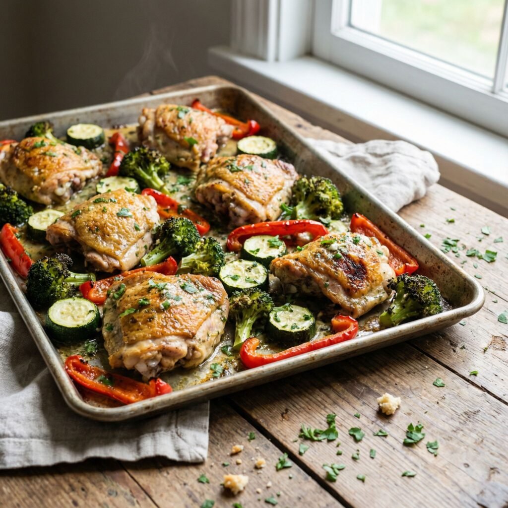 Looking for a fuss-free, flavour-packed keto dinner that comes together in just one pan? This Sheet Pan Chicken and Vegetables with Garlic Herb Butter is your answer. Perfect for busy weeknights or meal prep, this dish delivers juicy, golden chicken thighs and a medley of low-carb vegetables, all roasted to perfection in a savoury garlic herb butter.